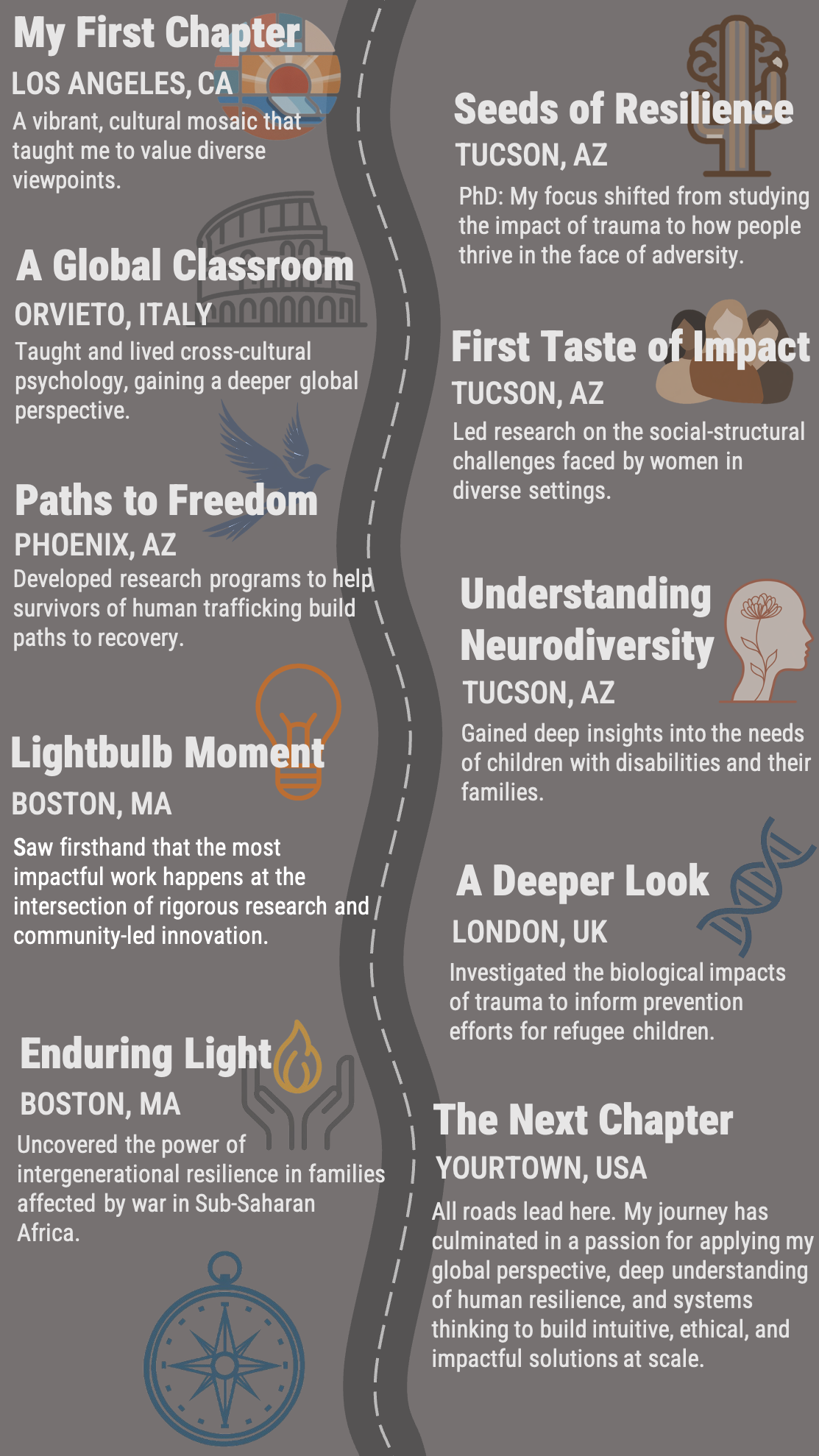 For over nine years, I’ve had the privilege of working with communities in places like Mexico, Rapanui, Rwanda, and Sierra Leone, as well as with survivors of human trafficking and refugee populations in the U.S. and Lebanon. My work focused on understanding the impact of traumatic life events—like exploitation, conflict, displacement, and poverty—on families and children. I designed and led large-scale studies to figure out what works, for whom, and why. This wasn't just academic; it was about generating real-world evidence to build better, more effective support programs.